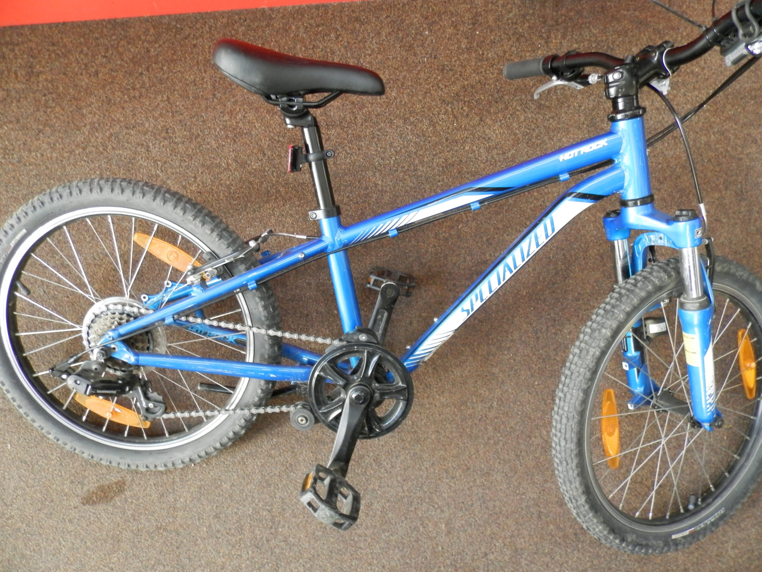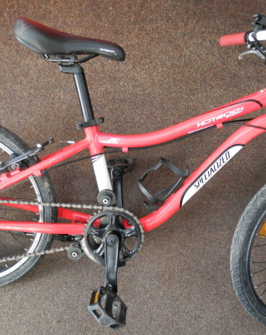 Použité dětské kolo Specialized HotRock 20″, rám 11″, speed 1×6, V-brzdy, Revo-shift, odpružená vidlice stojánek. Kolo je po servisu, v dobrém stavu.