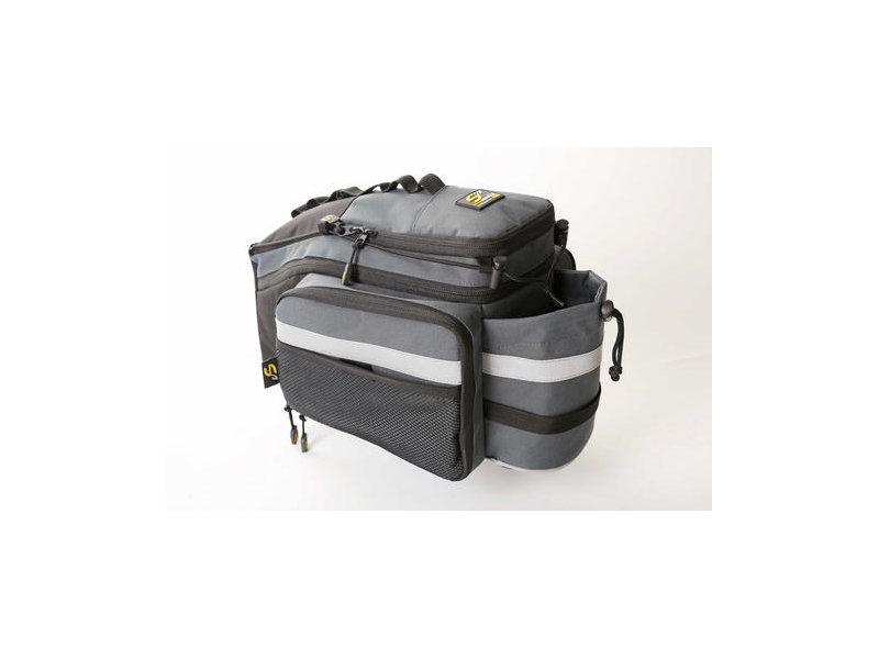 Universální brašna na zadní nosič kterou uplatníte na menší výlety, na cestu do práce, nebo pro rybáře juniora. Zásadní výhodou brašny je její členění a variabilita objemu. Ze středně velké brašny můžete mít po rozevření bočních kapes brašnu o objemu až 20 litrů.